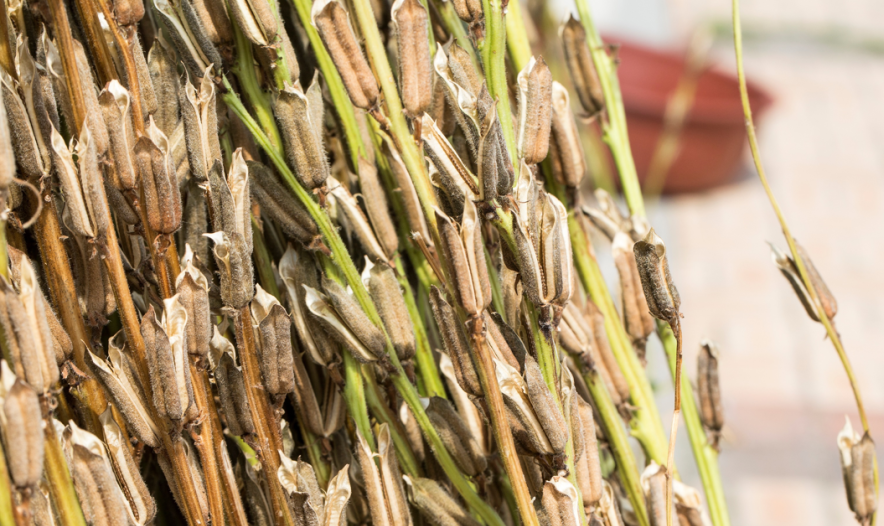 一顆顆飽滿的芝麻蒴掛滿枝頭。