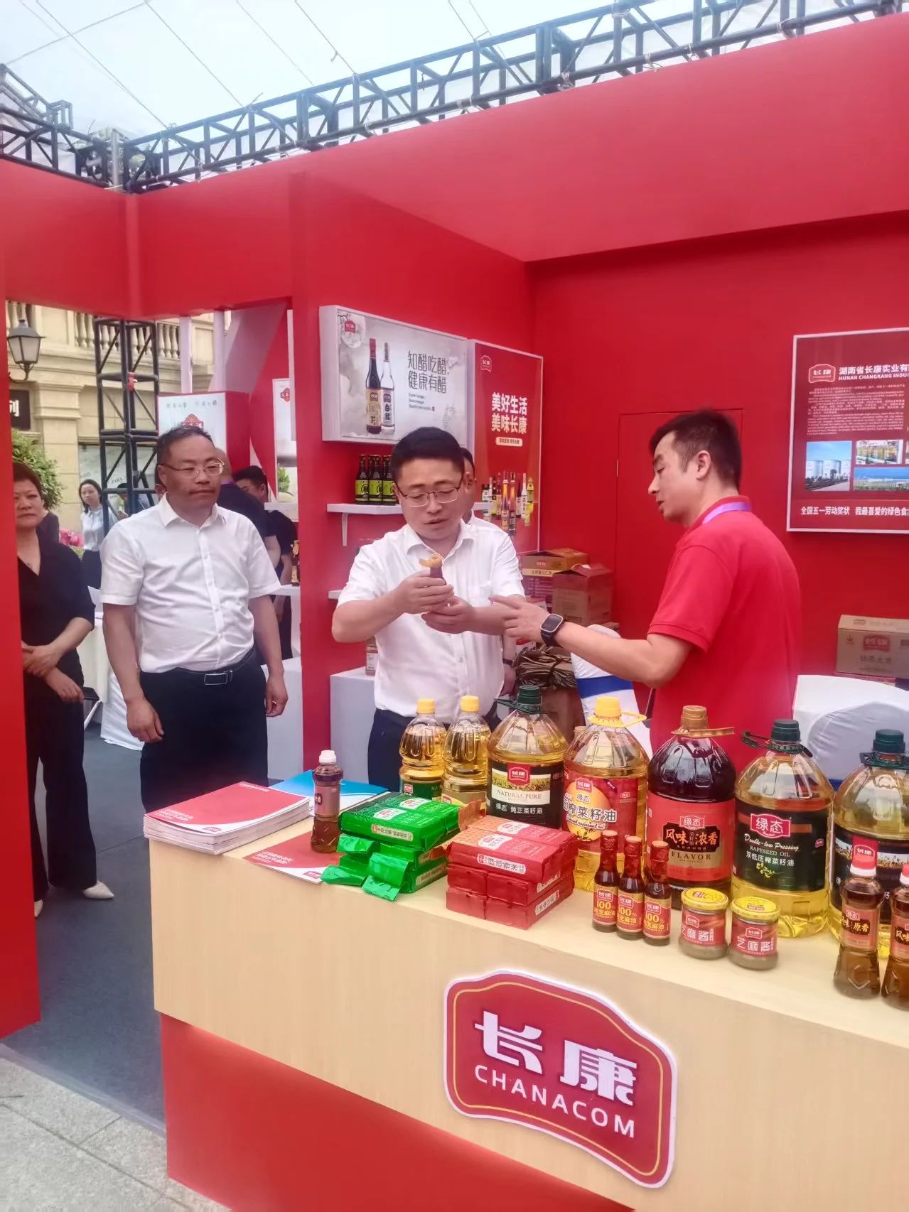 長康實業(yè)此次攜手多家湘陰企業(yè)組團參展,集中展示湖南風(fēng)味創(chuàng)新產(chǎn)品。長康展區(qū)以“從田間到餐桌”的健康調(diào)味為核心,重點展示獲得中國有機食品、綠色食品認證的多款產(chǎn)品,包括“長康芝麻油”“綠態(tài)壓榨菜籽油”“蘭嶺毛尖”等拳頭產(chǎn)品,覆蓋食用油、調(diào)味品、茶葉、大米等多重品類。