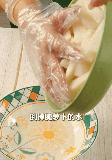 *腌制過(guò)程中,蘿卜會(huì)析出大量水分,同時(shí)也會(huì)變得柔軟有彈性~