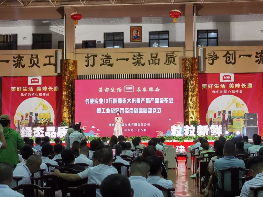 2023年8月28日,長康實業(yè)10萬噸綠態(tài)大米加工投產(chǎn)新產(chǎn)品發(fā)布會暨工業(yè)旅游示范點創(chuàng)建的啟動儀式在湘陰舉辦。湘陰縣各級領(lǐng)導(dǎo)、部門單位、戰(zhàn)略合作單位及來自全國優(yōu)秀的200多名客商代表們齊聚一堂,共同見證長康新品——綠態(tài)大米首次發(fā)布。