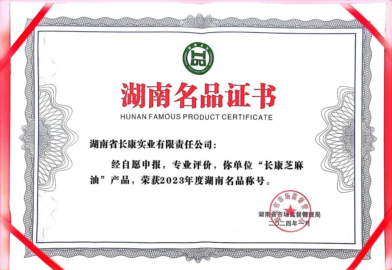 其中,長(zhǎng)康芝麻油憑借卓越的產(chǎn)品品質(zhì)和良好的市場(chǎng)口碑,榮獲2023年度湖南名品稱號(hào)。